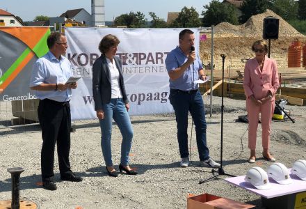 21.08.2018: Lokale Politprominenz, Investoren und Bauherrschaft haben in Obergösgen die Grundsteinlegung für den Bau von betreuten Alterswohnungen, Pflegeplätzen und Pflegewohngruppen für Menschen mit Demenz vollzogen. Das neue Seniorenzentrum ist nicht nur für die Einwohner von Obergösgen konzipiert, sondern gehört nach der kantonalen Planung zur Sozialregion mit den Gemeinden Dulliken, Lostorf, Obergösgen, Starrkirch-Wil und Stüsslingen. Die RUWA Generalbau AG und die Oase Holding AG zeichnen für diese wegweisende Überbauung gemeinsam verantwortlich.