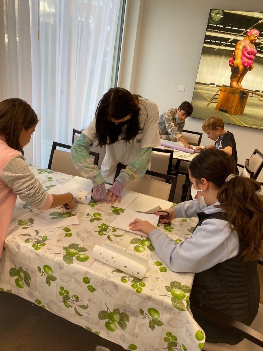 Nach dem Mittagessen haben wir mit den Seniorinnen und Senioren einen Aktivierungsnachmittag veranstaltet. Gemeinsam haben wir Engel gefaltet. Die Jungen haben den Senioren dabei geholfen, wo es zu helfen gab. Es war ein abwechslungsreicher und sehr interessanter Tag für alle.