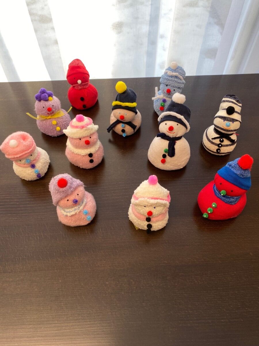 Ob bunt, klein oder gross, mit diesen süssen Sockenschneemännchen wird der kalte Winter versüsst. Alles was man dazu braucht ist Reis um die Socken zu füllen, zwei Stecknadeln für die Augen, eine kleine Bommelnase, ein satter Bauch, Schal und Mütze und schon ist unser Schneemann fertig.
