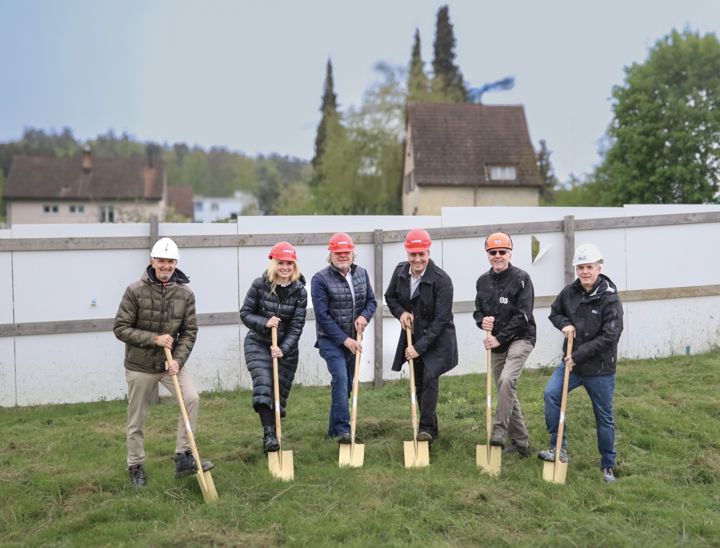 Spatenstich mit (v. l. n. r.) Fabian Vatrella (Geschäftsführer Gineco AG), Nathalie Balcon (Leitung Oase), Kaspar Grob (Aktionärsvertreter), Marco Nuzzi (Stadpräsident Effretikon), Marc Bosshard (RLC Architekten), Beat Streiff (Biedermann und Frey, Baumanagement)